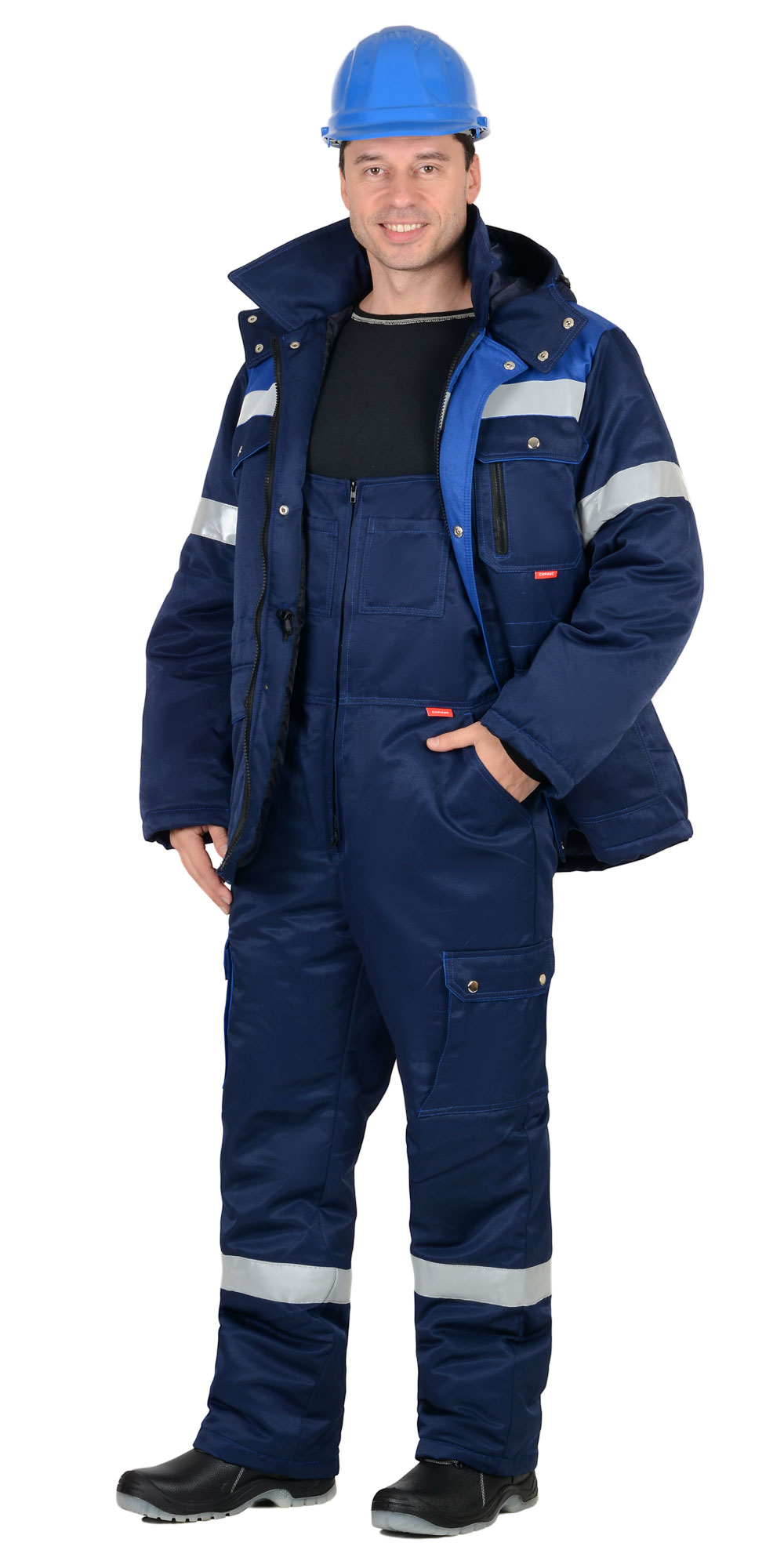 Костюм Сириус-Титан утепленный с п/к т.синий/васильк СОП 88-92/170-176 | Костюм состоит из куртки и полукомбинезона. Куртка длинная прямого силуэта, с притачной утепленной подкладкой, с центральной застежкой на молнию, с ветрозащитным клапаном, отложным воротником, с верхним накладным фигурным карманом на левой полочки и с верхним прорезным карманом на правой полочки, нижними накладными полу объемными карманами с фигурным клапаном, застегивающимся на кнопку, с кулисой по линии талии. Полукомбинезон прямой, с притачной утепленной подкладкой, с регулируемыми за счет пряжек - бретелями, с притачным нагрудником, с центральной застежкой на молнию, с нагрудными накладными карманами, с двумя боковыми внутренними карманами, с наклонным входом, с двумя нижними накладными карманами. В костюме предусмотрен СОП ш.50мм для обеспечения сигнальной видимости в условиях пониженной видимости. Ткань верха смесовая 80% п/э, 20% хлопок, подкладка "Таффета" 100% п/э, плотность 60 г/м2 Утеплитель "Синтепон" 150 г/кв.м, в куртке 3 слоя , в полукомбинезоне-2 слоя | компл | + | + | - | + | - | 6 229 | 5 609 |