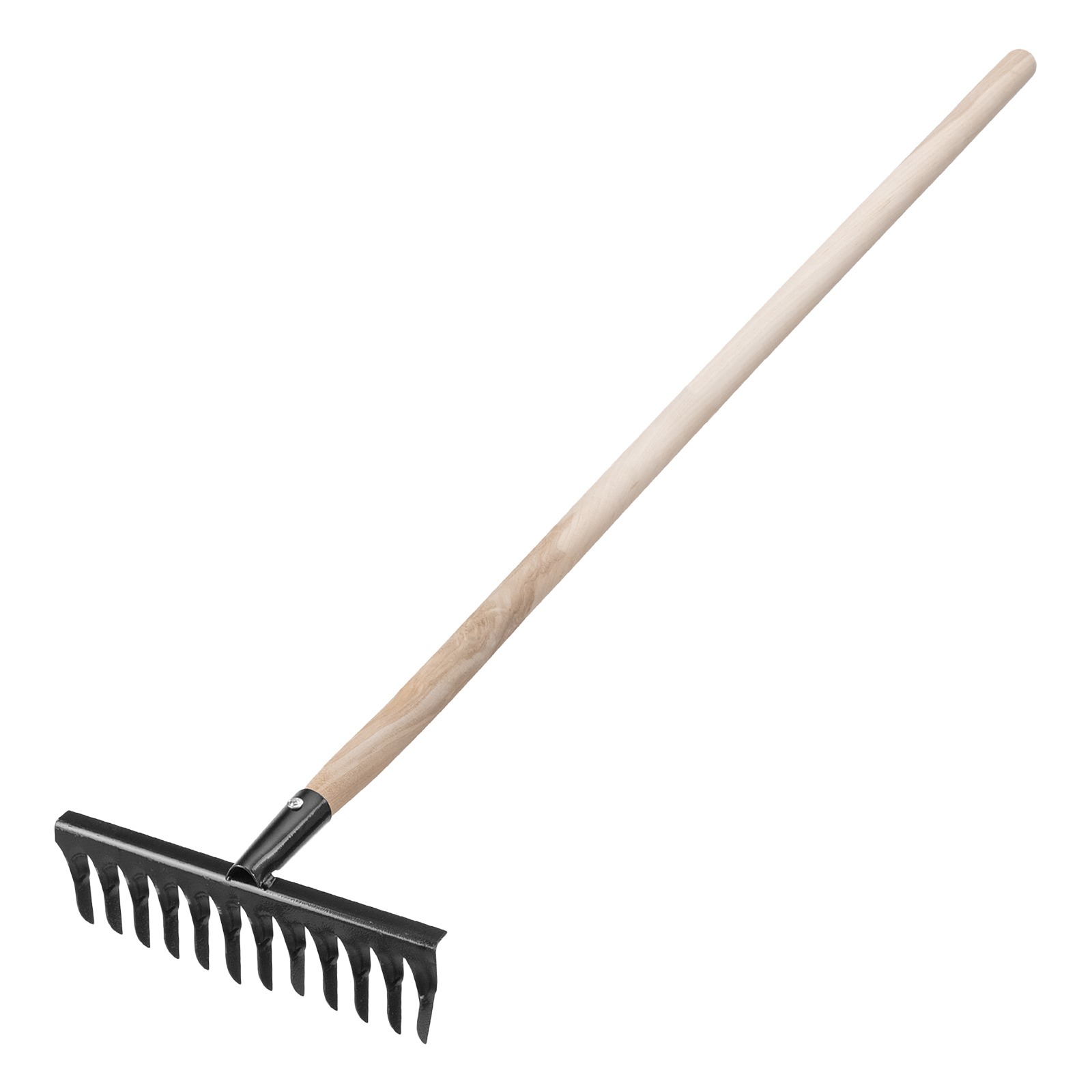 Длина, мм 1300Количество зубьев, шт 14 Материал рабочей части сталь Материал черенка древесина твердых пород Покрытие рабочей части эмаль порошковая Тип зубьев прямой Ширина рабочей части, мм 360 Стальные грабли с 14 прямыми зубьями, предназначены для садово-огородных работ. Они используются для выравнивания грядок и рыхления грунта. 14 заостренных на концах зубьев облегчают решение поставленных задач Преимущества • Прочность - рабочая часть и тулейка сделаны из конструкционной углеродистой стали. • Антикоррозионный эффект - покрытие из порошковой эмали предотвращает разрушение грабель. • Надежность и прочность - зубья имеют утолщенный профиль.