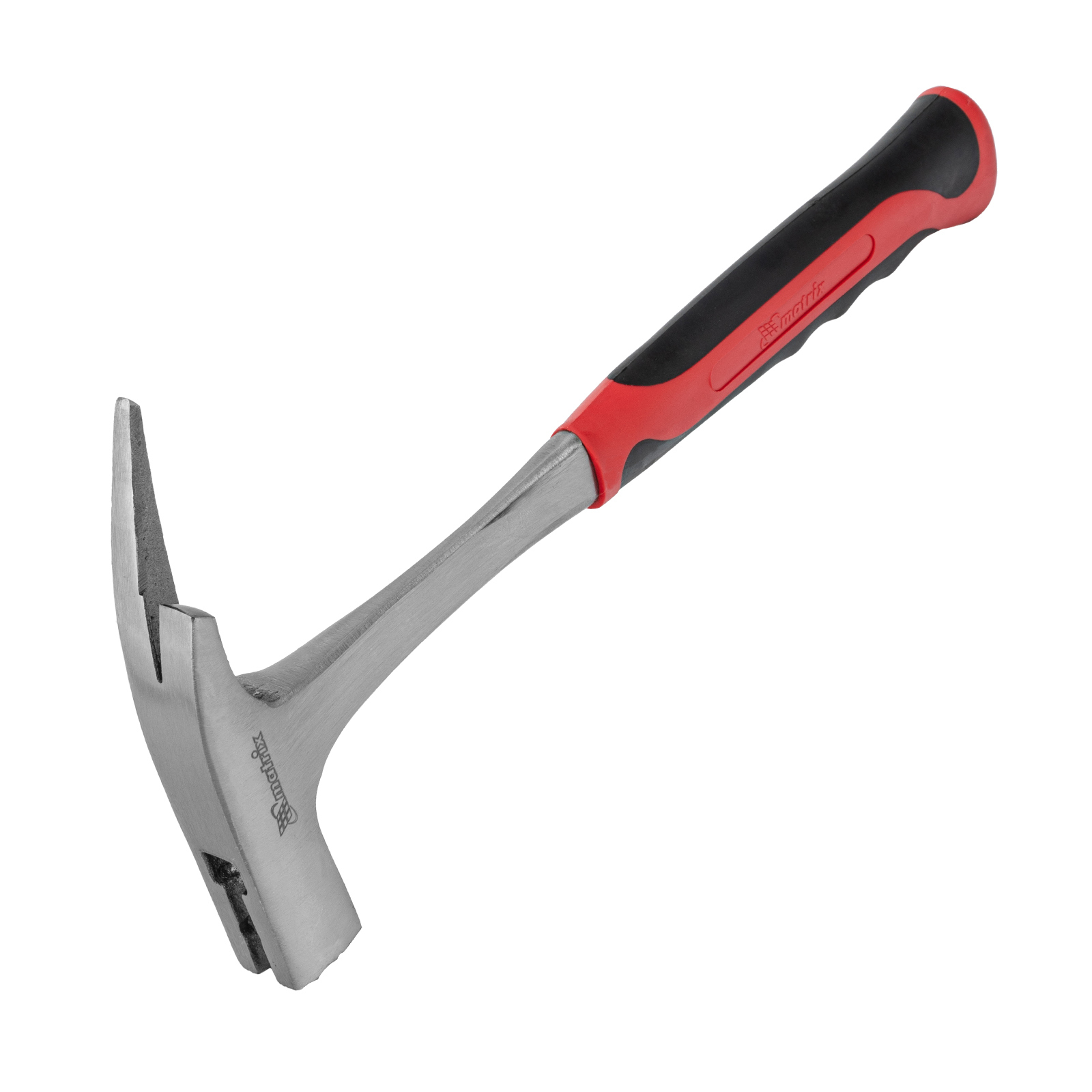 Вес бойка, г 600Материал бойка сталь Материал рукоятки пластик, резина, металл Форма бойка квадрат Цельнометаллический молоток кровельщика Matrix с головкой весом 600 г и двухкомпонентной рукояткой — специализированный инструмент для кровельных работ. Насечки на рабочей поверхности бойка предотвращают соскальзывание, если удар по гвоздю нанесен под углом. Противоположная часть головки представляет собой заостренный клин для пробивания отверстий в листовом металле и отгибания кромок. Гвоздодер позволяет вытягивать неправильно забитые гвозди для их выпрямления. Преимущества • Молоток изготовлен из высококачественной кованой стали С55 с соблюдением определенного режима термообработки, что обеспечивает его прочность и долговечность. • Головка закалена до твердости 50-55 HRC, поэтому устойчива к износу при многократных динамических нагрузках, боек отполирован. • Магнитный фиксатор удерживает гвоздь в момент первого удара, что позволяет работать в труднодоступных местах, когда нет возможности придержать гвоздь рукой. • Цельнометаллическая конструкция исключает поломку рукоятки и ее повреждение в случае промаха при ударе. • Двухкомпонентная рукоятка с рельефной поверхностью обеспечивает надежный хват и не выскальзывает из ладони, что повышает комфорт и безопасность эксплуатации.
