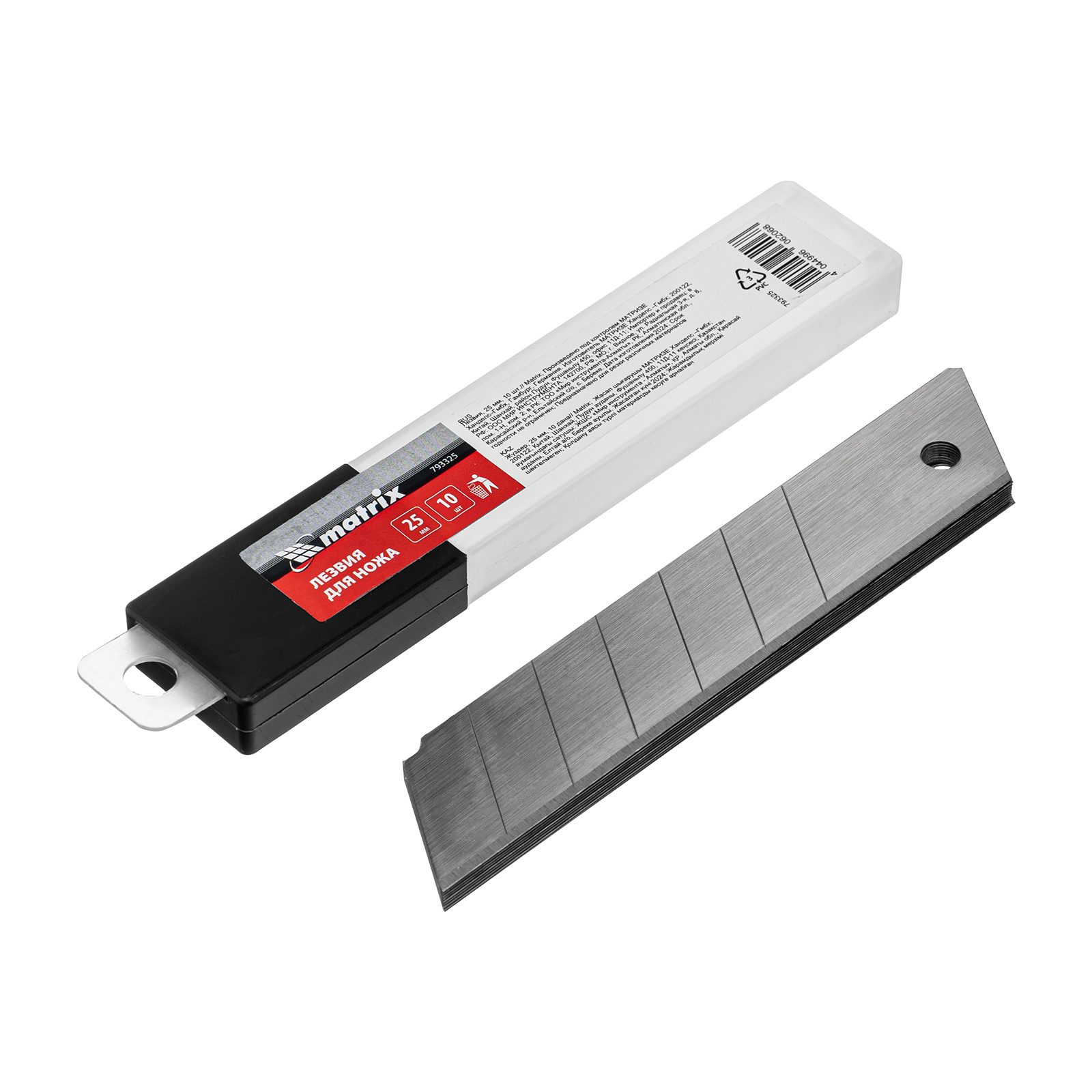 Длина лезвия, мм 125Материал корпуса пластик+резина Материал лезвия сталь 60 Толщина лезвия, мм 0.7 Форма лезвия прямое Ширина лезвия, мм 25 Нож Matrix в двухкомпонентном корпусе, с выдвижным лезвием шириной 25 мм, металлической направляющей, винтовым фиксатором и магнитом, применяется для разрезания картона, линолеума, ковролина, обоев, пленки, кожи и других мягких материалов. Лезвие выдвигается на необходимую длину и удерживается в этом положении при помощи винтового фиксатора. Преимущества • Лезвие толщиной 0,7 мм долго сохраняет режущую способность, т.к. изготовлено из высокоуглеродистой стали 60. • Затупившемуся лезвию легко вернуть остроту — на полотно нанесены насечки, позволяющие удалить изношенный сегмент. • Во время работы полотно сохраняет ровное положение благодаря металлической направляющей, что позволяет прикладывать значительные усилия без риска поломки инструмента. • Двухкомпонентная рукоятка надежно фиксируется в руке благодаря вставкам с рифленой поверхностью. • Конструкцией ножа предусмотрена возможность замены лезвий, поэтому инструмент рассчитан на длительную эксплуатацию. • Замена полотна осуществляется вручную через хвостовую часть и занимает несколько секунд.